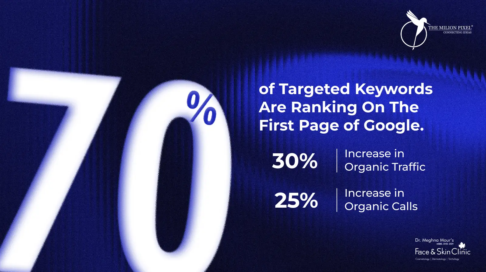 70% of targeted keywords are ranking on the first page of Google.
